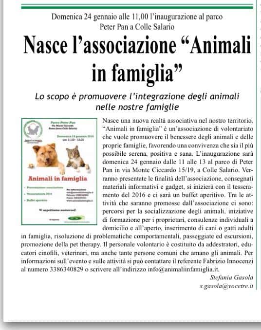Nasce l’associazione “Animali in famiglia”